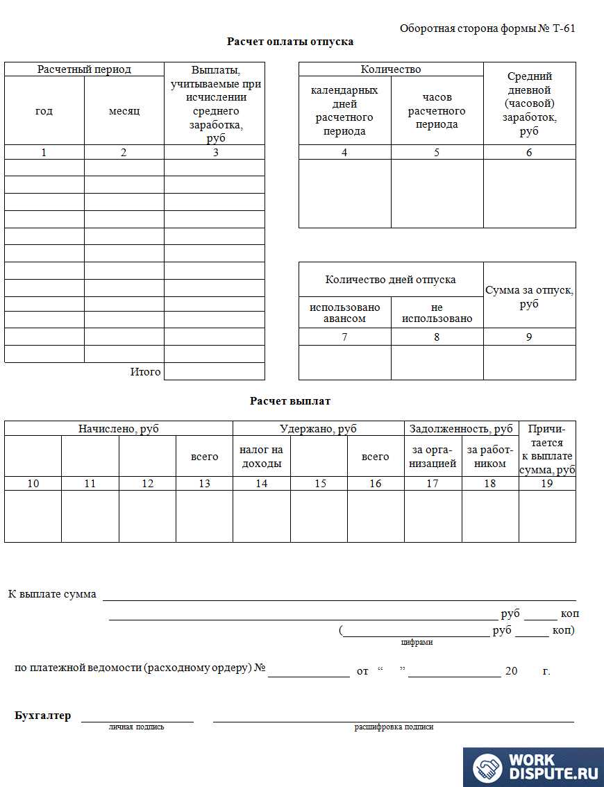 В настоящее время установлен действующий образец формы Т-61, включающий в себя основные разделы на лицевой стороне документа: