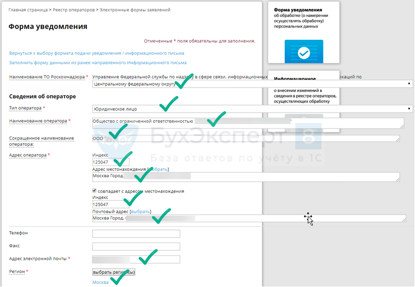Роскомнадзор уведомление о сборе ПД и уведомление об изменении представленной информации.
