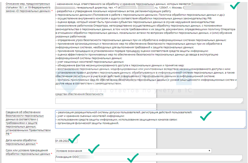 В уведомлении нужно указать дату, с которой оператор начали обработку персданных. Специалисты Роскомнадзора разъяснили, что такой датой считается день государственной регистрации компании или ИП (информация пресс-службы Роскомнадзора от 25.08.2022).