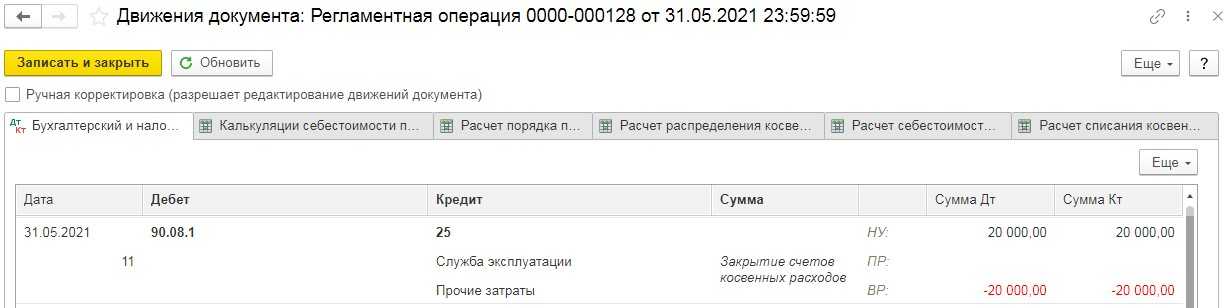 Повторим закрытие месяца и проанализируем проводки.