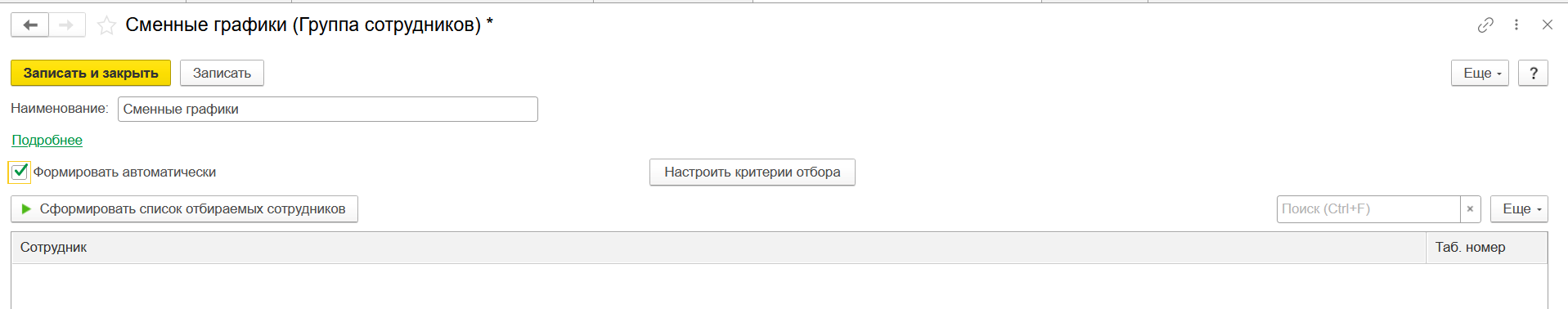Группы сотрудников описываются в справочнике Группы сотрудников (Настройка – Группы сотрудников). Можно создать группы не только для ручного внесения сотрудников, но и с автоматическим заполнением. Для этого достаточно установить флаг Формировать автоматически