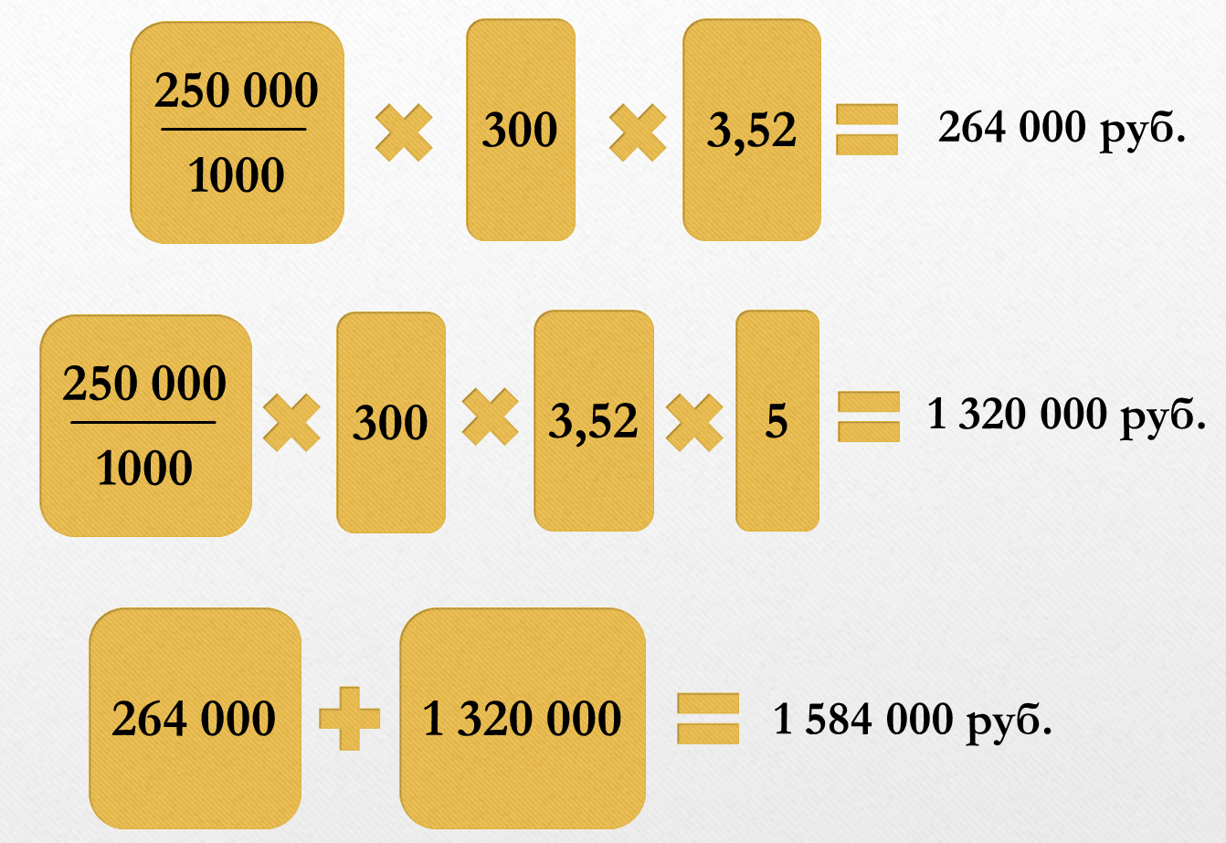 Возьмем тот же пример, но добавим условие, что добыть из Волги можно было только 250 тысяч кубометров. Тогда подсчет налога будет разбиваться на две части: