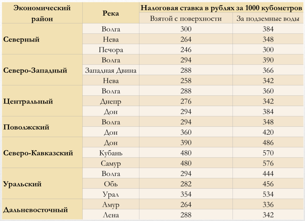Например, компания добыла из Волги в Северном экономическом районе 300 тысяч кубометров воды. Налог будет считаться так: