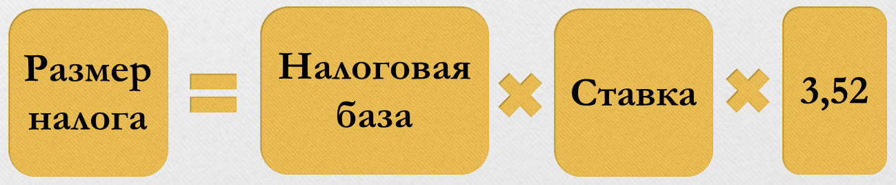 Налог = Налоговая база* Ставка* Поправочные коэффициенты.