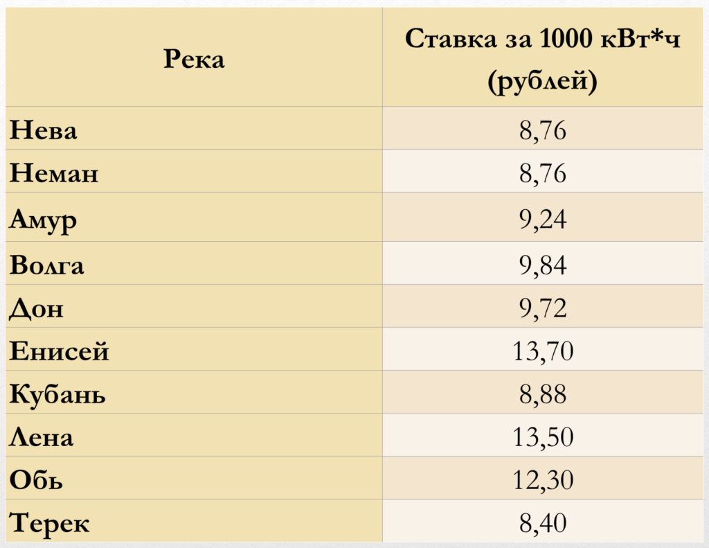 Вот как выглядят ставки водного налога за использование главных рек России: