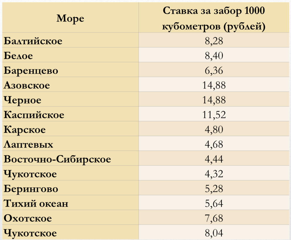 Отдельные ставки предусмотрены для использования морских территорий, входящих в состав России:
