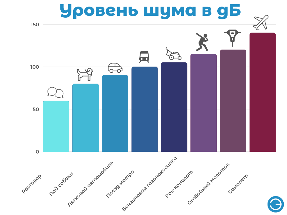По данным ВОЗ, комфортный для человека уровень звука — это 20–30 дБ. Звук начинает оказывать негативное воздействие на организм уже при 53 дБ, ритм сна сбивается при уровне ночного шума свыше 42 дБ — этого достаточно, чтобы заработать бессонницу. А риск потери слуха наступает при уровне шума в 90 дБ.