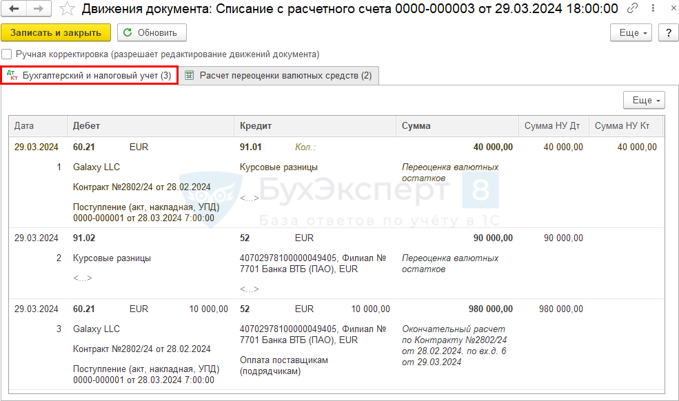 В нашем примере в момент принятия на учет товаров образовалась кредиторская задолженность перед иностранным поставщиком по Кт 60.21, рассчитанная по курсу на дату принятия их на учет.