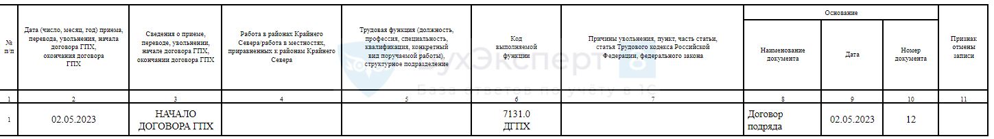 - гр. 2 — Дата заключения или расторжения договора ГПХ;