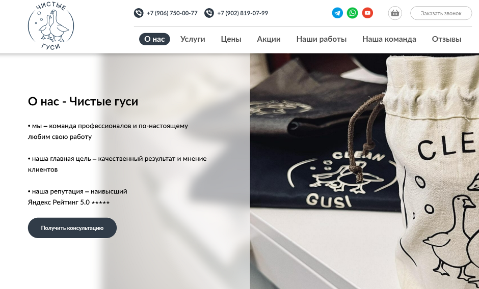 «Чистые гуси» – команда профессионалов, которые предоставляют премиальное качество услуг по разумным ценам. Они всегда учитывают мнение клиентов и постоянно добавляют новые услуги для повышения уровня сервиса. В каталоге компании представлен не только стандартный перечень услуг, но и разнообразные допуслуги, например, чистка фасадов, полировка полов или дезинфекция помещений, что особенно актуально в нынешних реалиях.