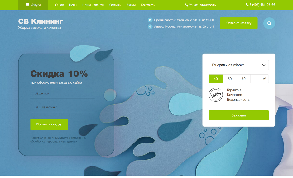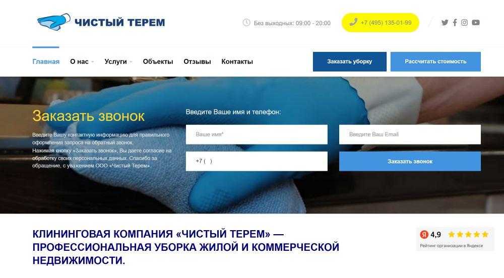 - возможность заказа услуг по телефону или через заявку на сайте;