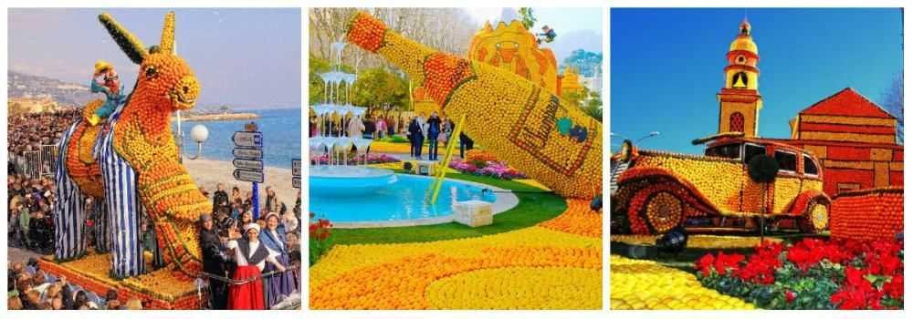 На Лазурном берегу французской ривьеры каждый год в конце февраля проходит необычный праздник цитрусовых. Более 400 тысяч туристов приезжает посмотреть на гигантские скульптуры из апельсинов, лаймов, грейпфрутов и лимонов. Праздник по традиции открывает торжественный парад, на котором под музыку проезжают фруктовые экспонаты. Затем процессия отправляется в парк Бьове, где и открывается настоящая выставка. Все торжество длится около трех недель, поэтому у туристов много времени, чтобы насладиться творениями мастеров, вдоволь повеселиться и, конечно, попробовать лимоны!