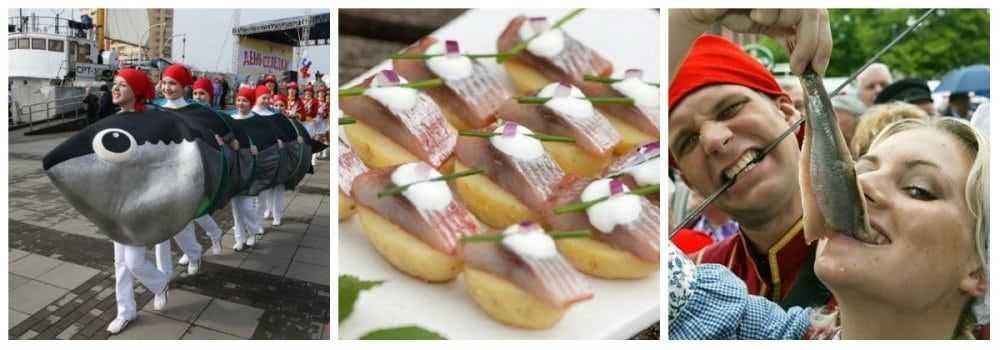 День селедки отмечают 9 апреля в Калининграде не случайно: селедка — это самая любимая рыба у россиян, а от берегов Калининграда в апреле 1948 года началась первая экспедиция, посвященная добыче этой рыбы, к берегам Исландии. Инициатором праздника 11 лет назад выступил Музей Мирового океана. День селедки даже попал в книгу рекордов России после того, как в 2010 году на калининградском судне повара приготовили «Селедку под шубой» весом 305 килограмм и длинной 7 метров! Праздник обычно начинается торжественным парадом ветеранов военно-морского флота, который проходит на набережной в компании королевы-селедки. А уже после действо продолжается вкусной дегустацией, конкурсами и концертами.