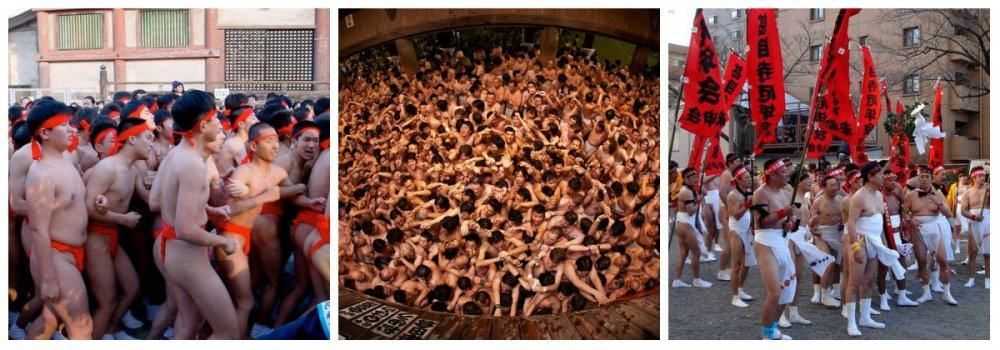В переводе с японского языка название этого необычного праздника означает «День обнаженных мужчин». Он устраивается каждый год в 3 субботу февраля в небольших городах Японии, хотя раньше имел в стране повсеместное распространение. Суть мероприятия заключается в том, что тысячи практически нагих мужчин выходят на морозные улицы, чтобы очиститься и привлечь к себе удачу. Их тела прикрывают только специальные набедренные повязки белого цвета – «фундоси», напоминающие пояса борцов сумо, которые называются «маваси». Вся толпа следует за полностью обнаженным человеком, причем каждый участник шествия норовит до него дотронуться.
