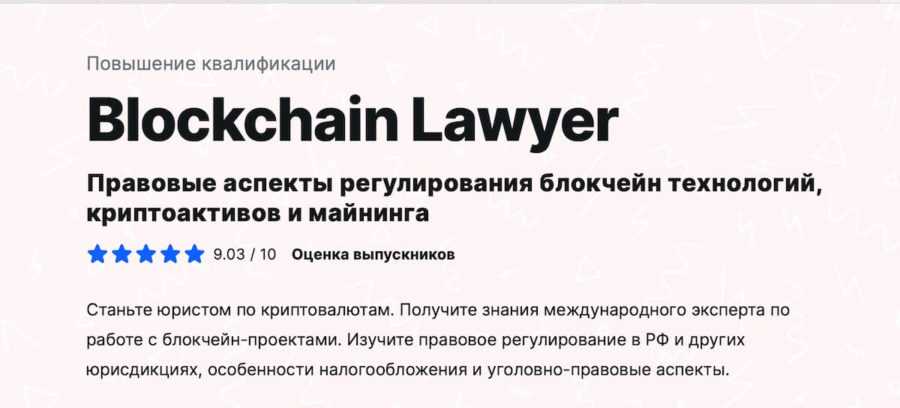 Вердикт: Курс Blockchain Lawyer от Moscow Digital School рассматривает криптовалюту через призму юриспруденции. Будущие специалисты разберутся не в том, какие монеты для инвестирования выбирать, а как регулируется блокчейн-технология, как работают криптоактивы и майнинг, по какому принципу функционируют уголовно-правовые аспекты и налогообложение в подобных случаях.