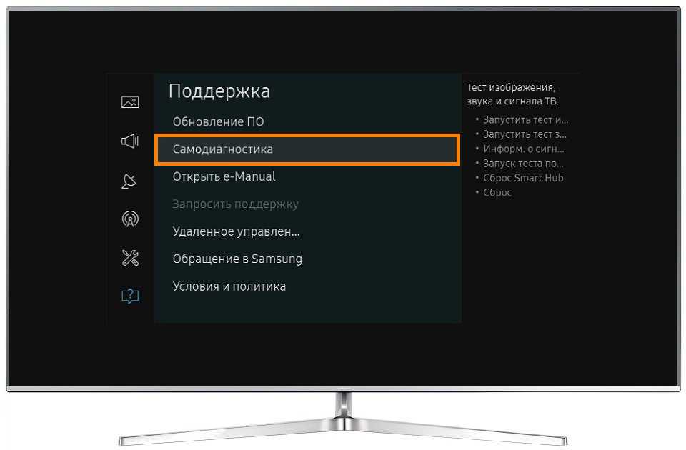 - Выберите раздел «Поддержка», а затем вкладку «Самодиагностика».