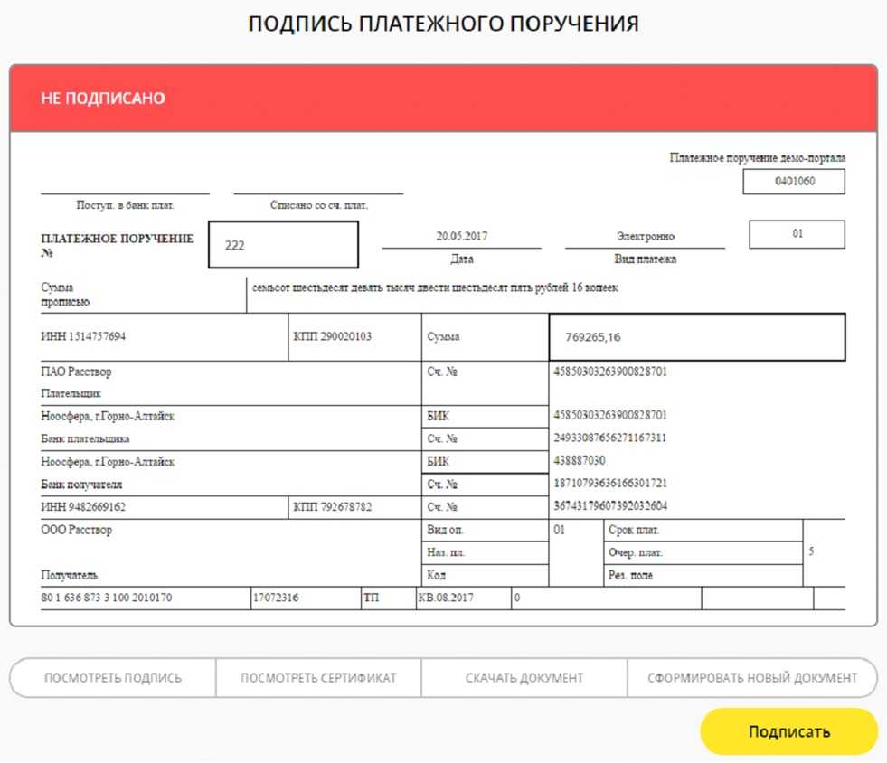 Далее можно ознакомиться с документом, если все в порядке, поставить подпись.