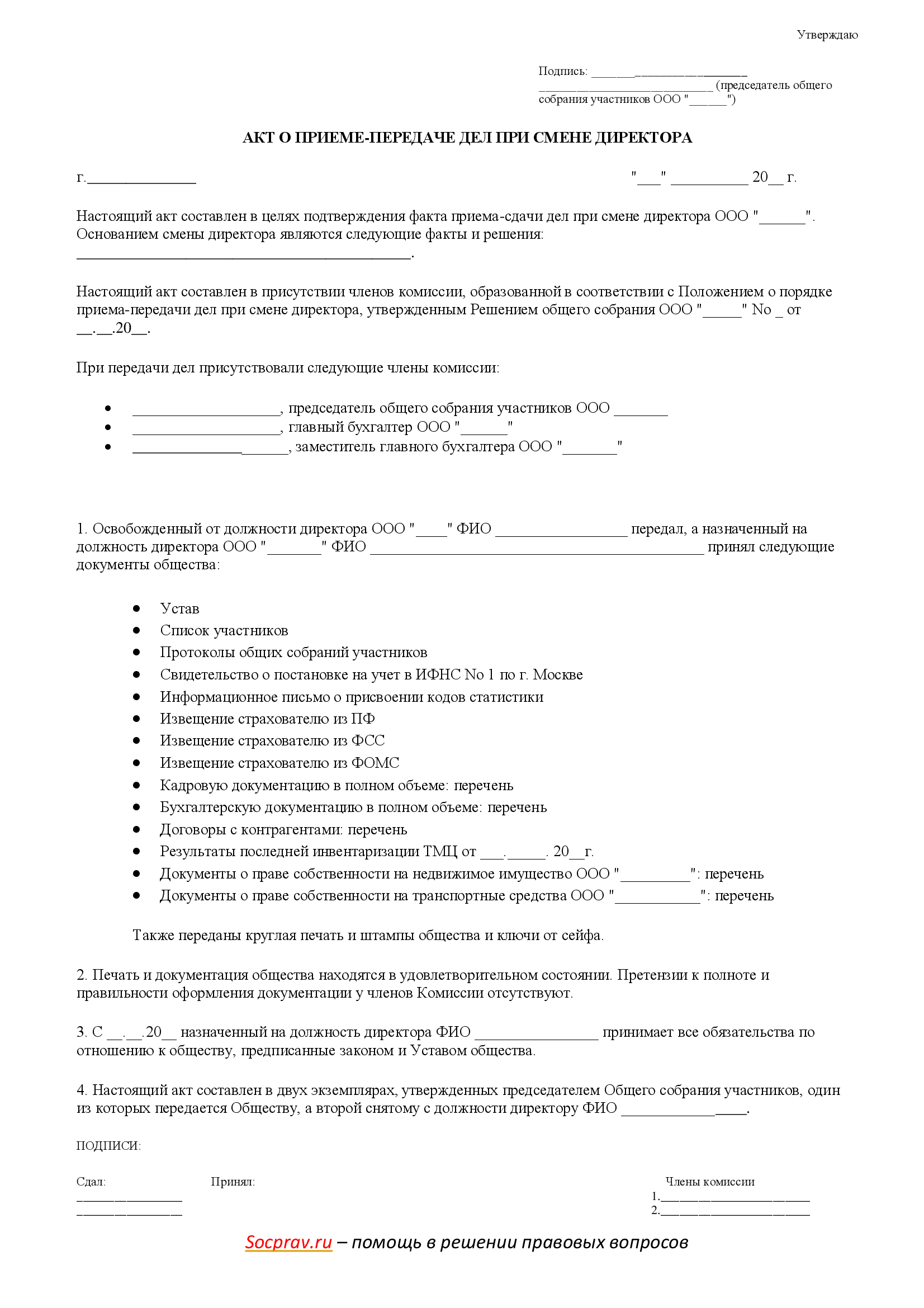 Далее бывшему руководителю организации необходимо передать все текущие документы новому работнику