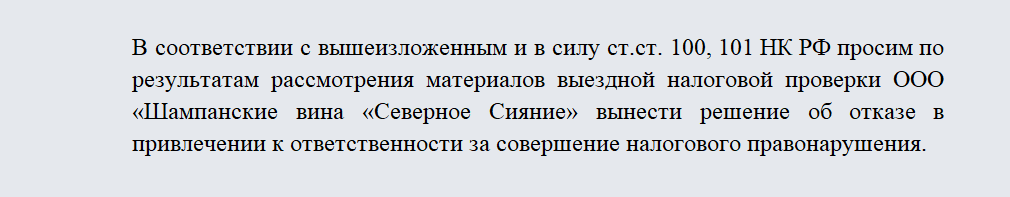 Просим рассмотреть возражения и принять решение об отказе в привлечении к налоговой ответственности по неправомочности применения вычета НДС в сумме 125 700 рублей по счет-фактуре № 266 от 12.08.2014.