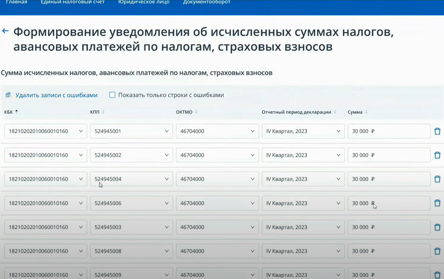 - ИНН, КПП, реквизиты ИФНС, указанные в онлайн-форме;