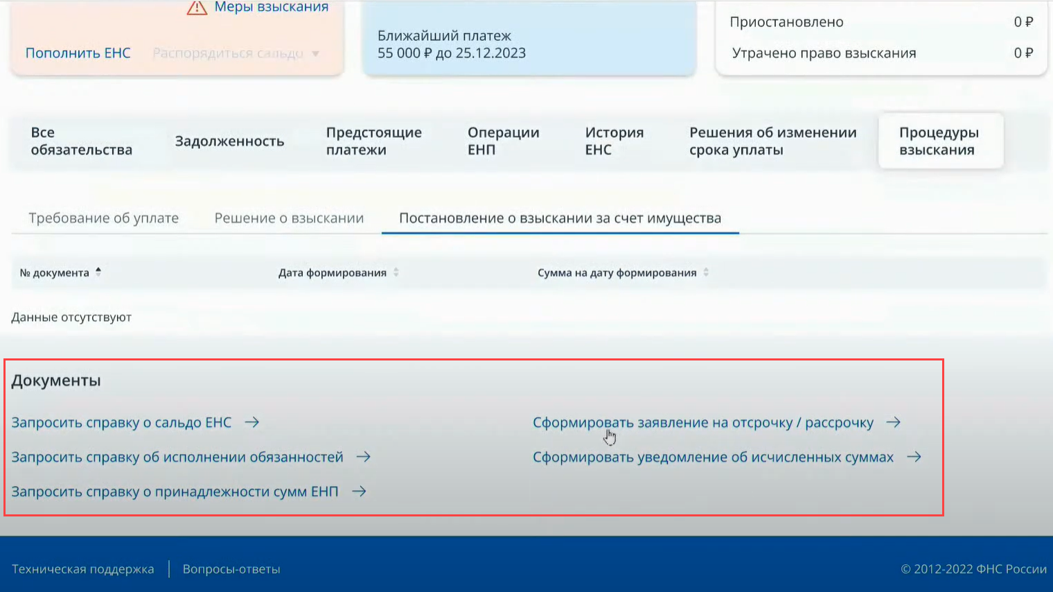 Из ЛК ЮЛ можно Запросить справку о сальдо ЕНС, кликнув по нужной ссылке в группе Документы нижней части экрана — и запрос будет отправлен в налоговый орган.