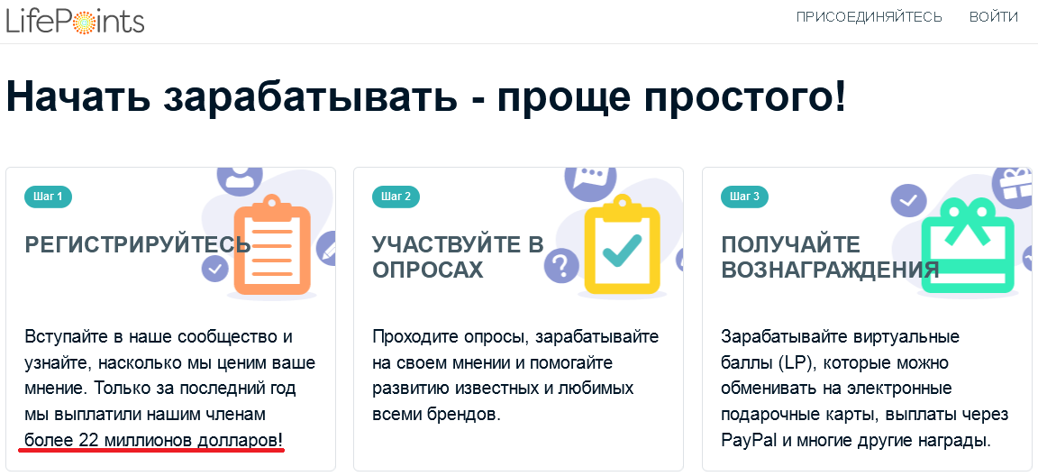 LifePoints — хороший сайт с опросами с выводом денег, имеет хорошие цены на опросы, а также приятный интерфейс. Главным отличием является наличие мобильных приложений в AppStore и Google Play.