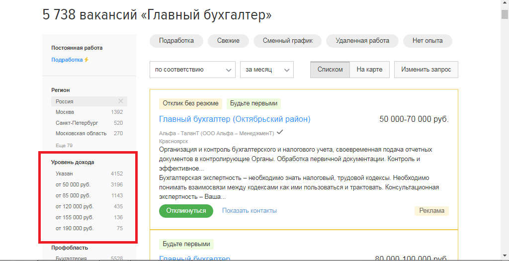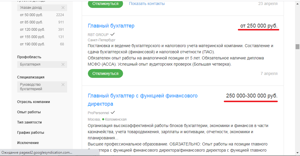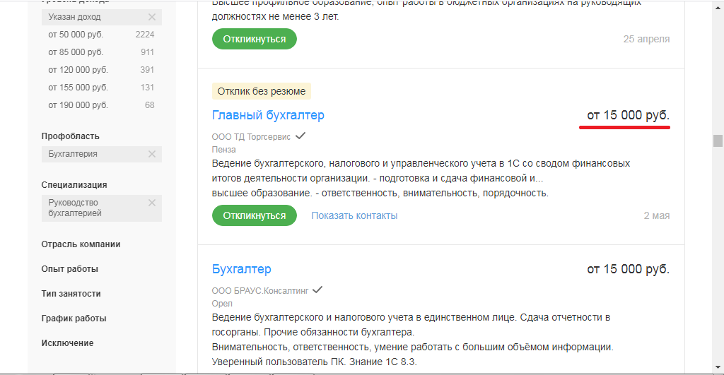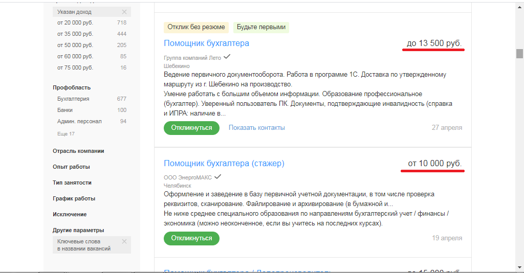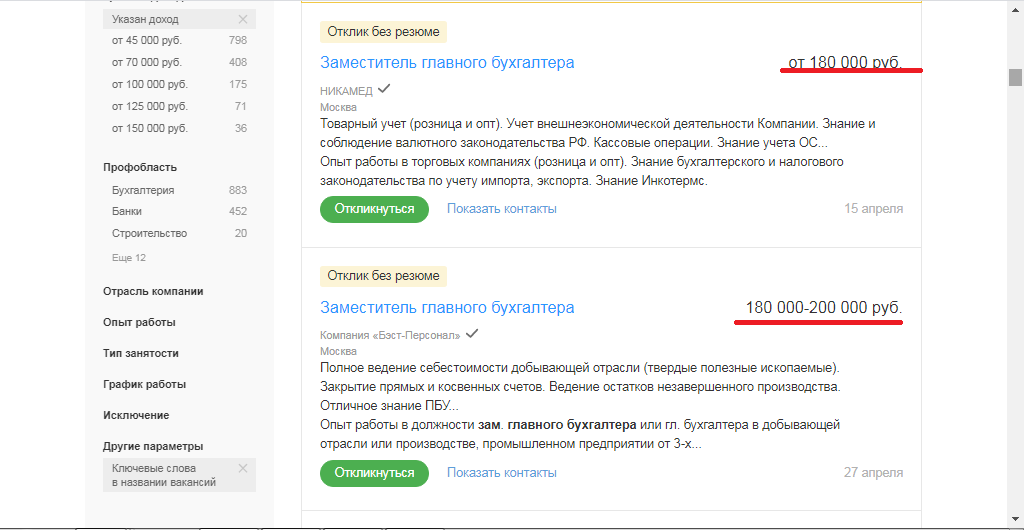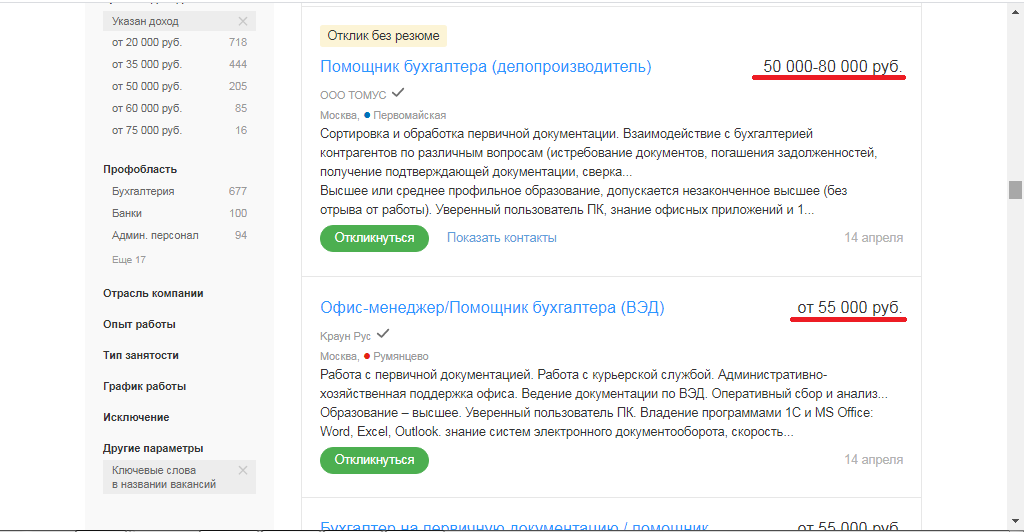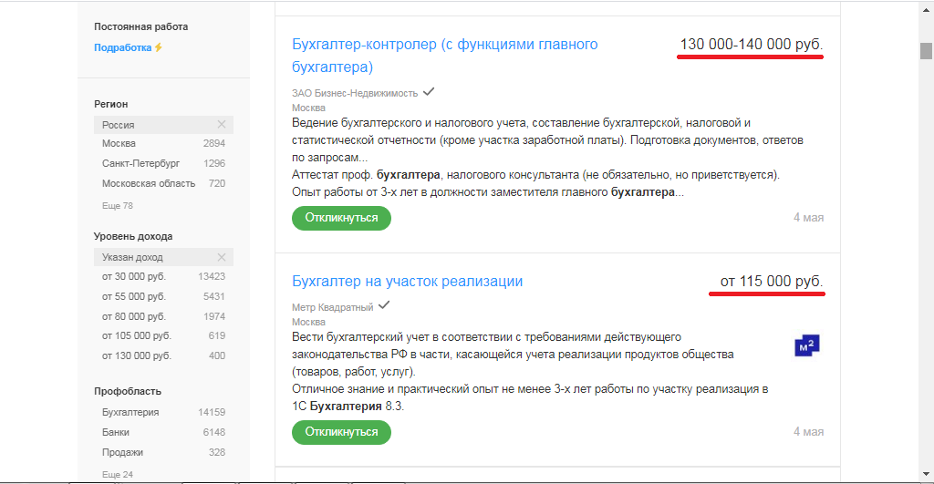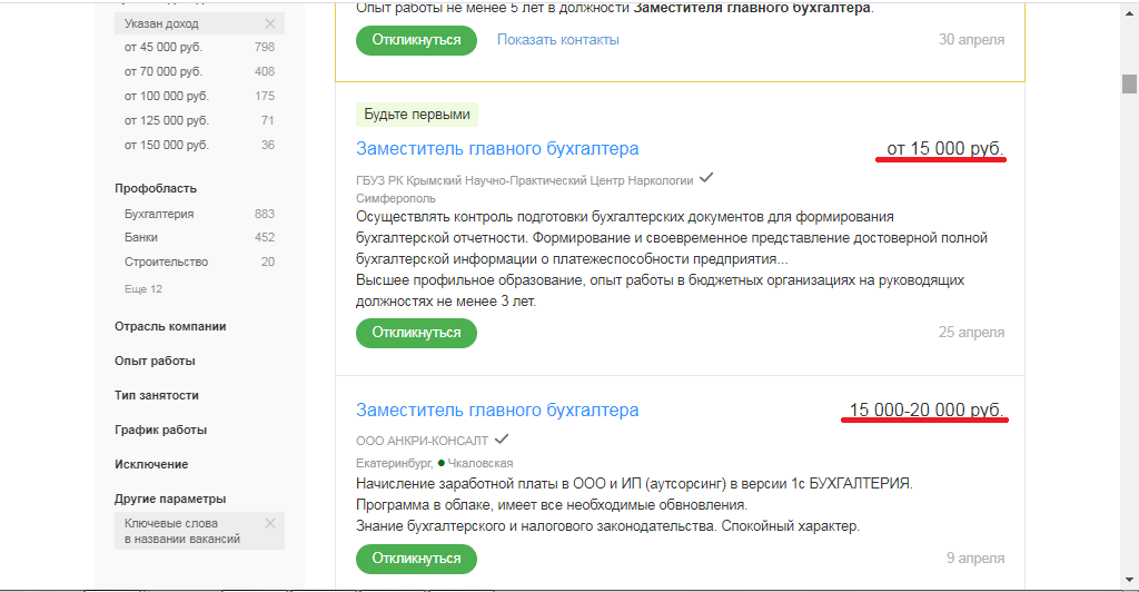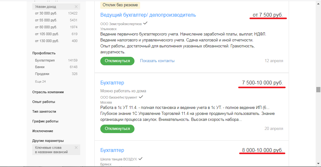 Обращаем внимание, что в этой статье речь пойдет о заработной плате сотрудников бухгалтерии за апрель 2021 года по данным о вакансиях с сайта hh.ru