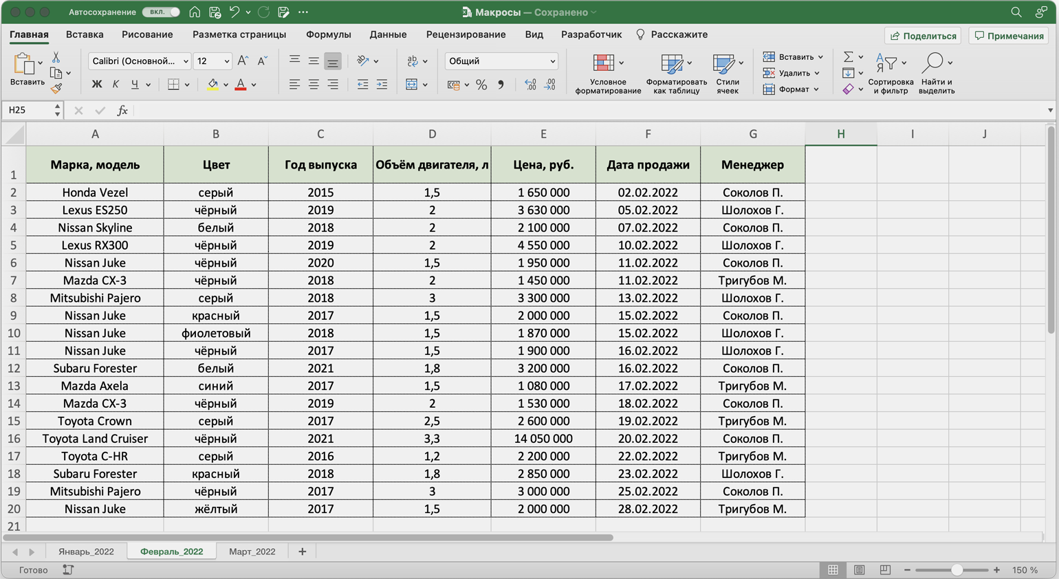 То же самое можно сделать и на третьем листе для таблицы продаж за март. Более того, этот же макрос можно будет запустить и в следующем квартале, когда сервис автосалона выгрузит таблицы с новыми данными.
