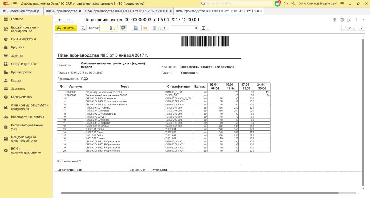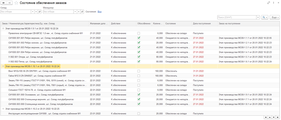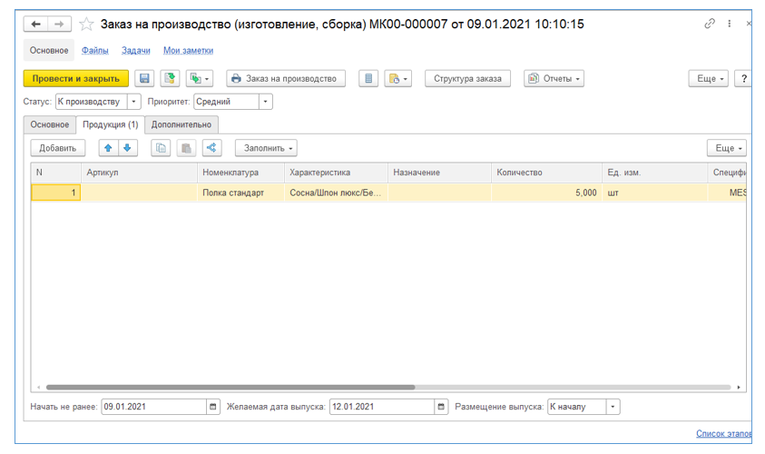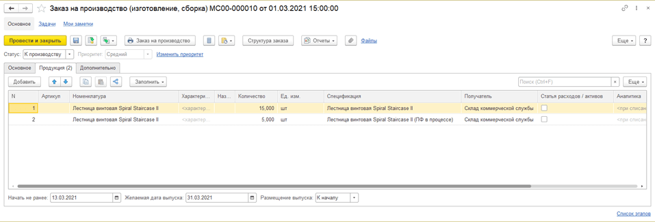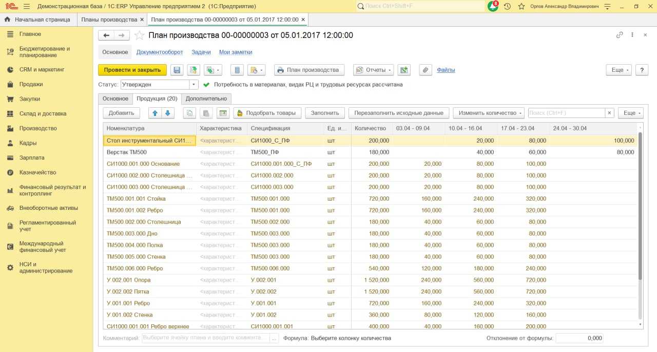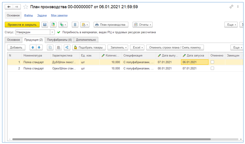 Такой результат сохраняется системой в плане производства, а во внимание берется расчетная дата запуска продукта. Все это позволило создавать предварительные этапы планирования, которые необходимы для реализации основного плана производства.