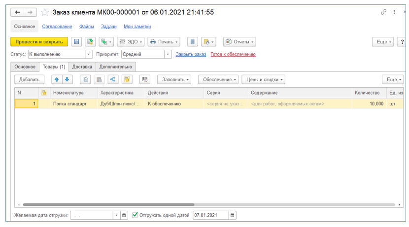 Методы и способы обеспечения могут быть указаны для каждой совокупности объектов Склад-Номенклатура-Характеристика при помощи рабочих мест «Настройка поддержания запасов» и «Настройка способов обеспечения потребностей». Документы, отражающие движение продукции и материалов с участием подразделений, создаются в рабочем месте «Накладные к оформлению».