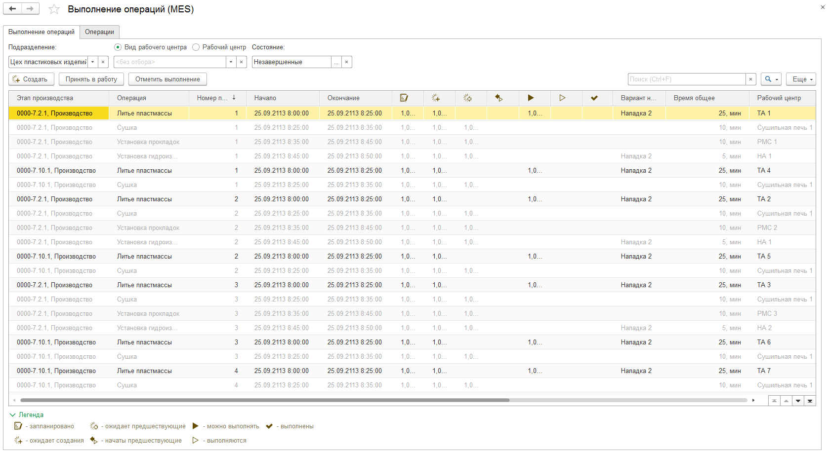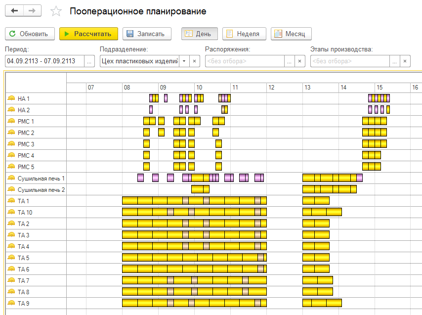Для составления оптимального по выбранным критериям пооперационного расписания для рабочих центров предусмотрено использование инструментов MES — системы.