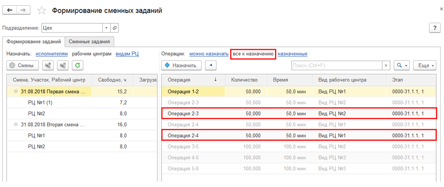 Производственные операции, назначаемые на конкретный интервал рабочего времени, могут объединяться в сменные задания.
