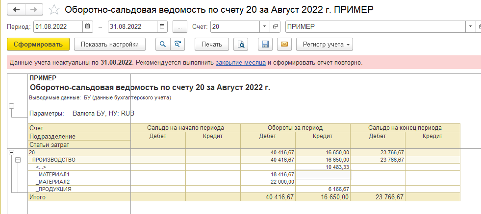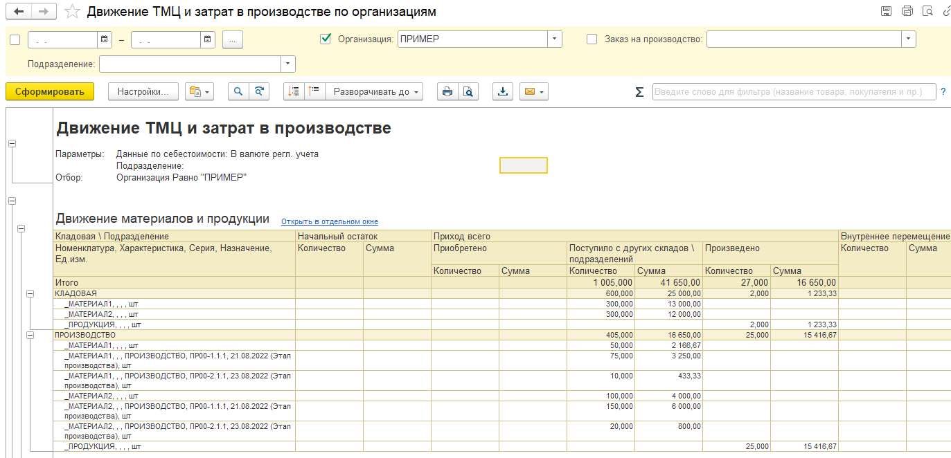 Рис.44. Отчет «Движение ТМЦ и затрат в производстве