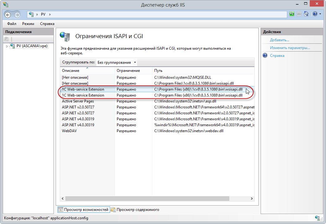 » на «C:\Program Files\1cv8\8.3.?.???\bin\wsisapi.dll