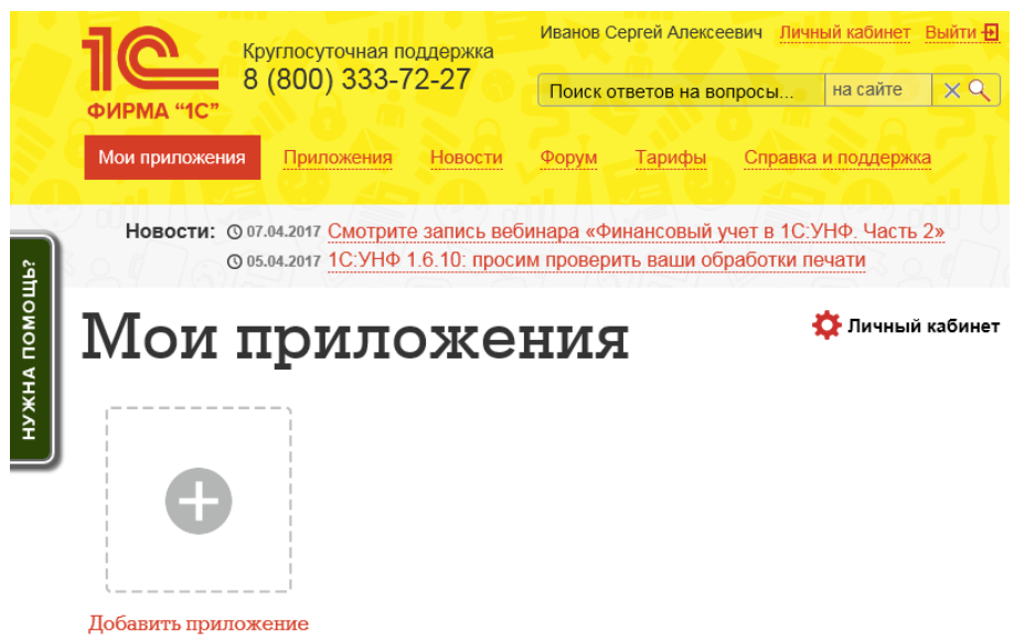 Рис.3. Страница «Мои приложения» в сервисе «1С:Фреш»