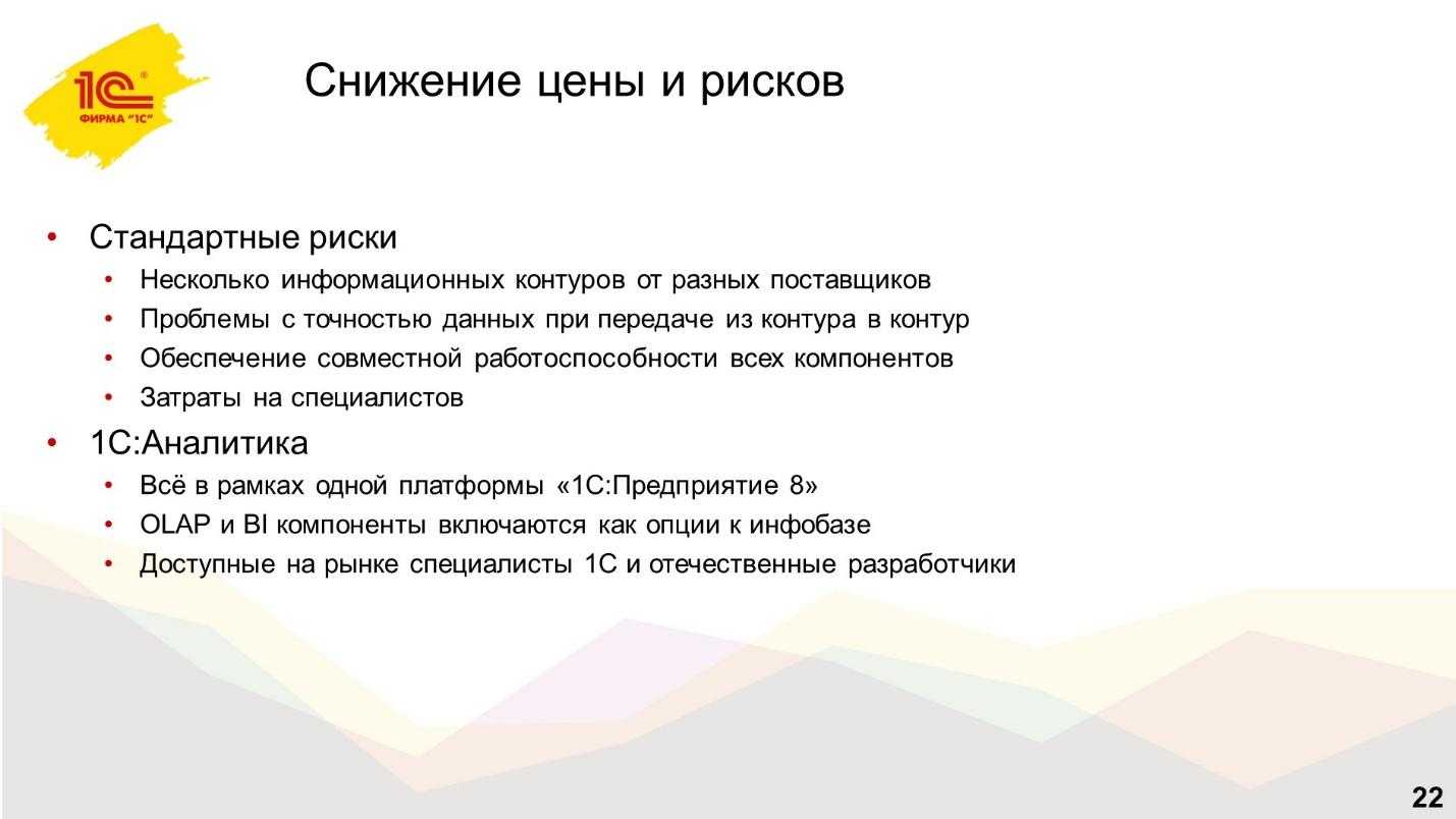 Обозначу несколько технологических моментов, чем отличается продукт 1С:Аналитика от других решений.