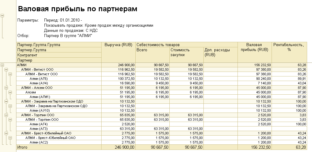 Рассмотрим на пример. Допустим, мы работам с сетью «АЛМИ». В состав сети входит несколько юридических лиц, у каждого из них есть несколько магазинов. И руководство просит построить отчет как по всей сети, так и по каждой торговой точке.