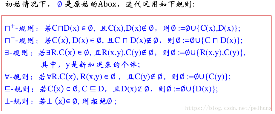 Правила работы Tableaux (на примере основного оператора DL) следующие: