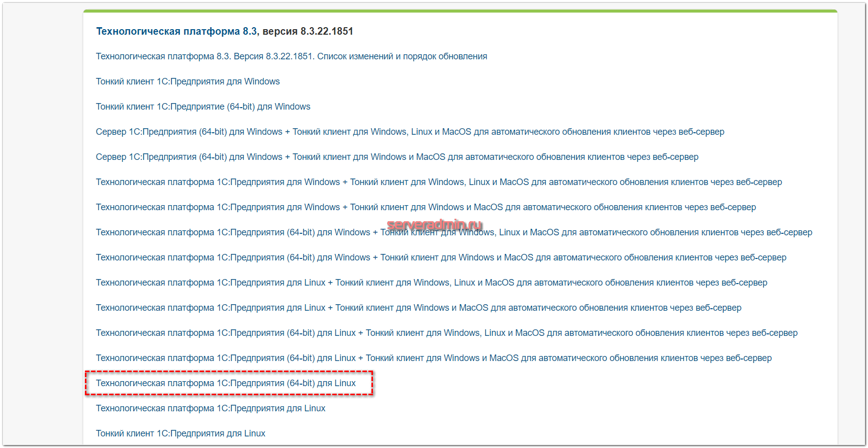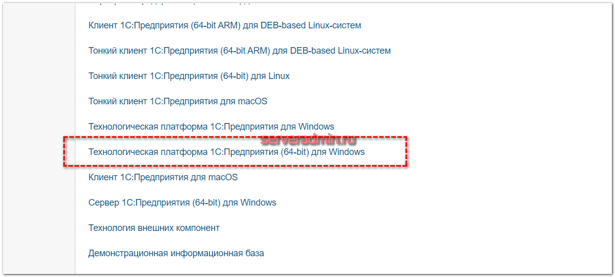 Теперь идём на любую машину, где у вас установлена консоль администрирования 1С. Обычно её на какую-то виндовую машину ставят. Для этого надо скачать Технологическую платформу той же версии, что и установленный сервер 1С на Debian.