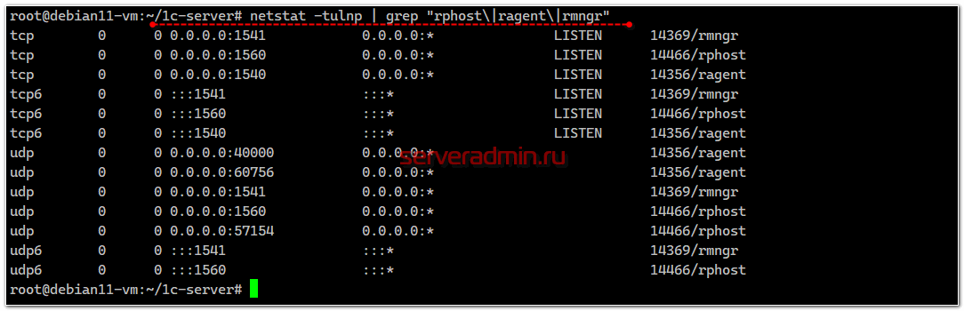 # netstat -tulnp | grep "rphost\|ragent\|rmngr"