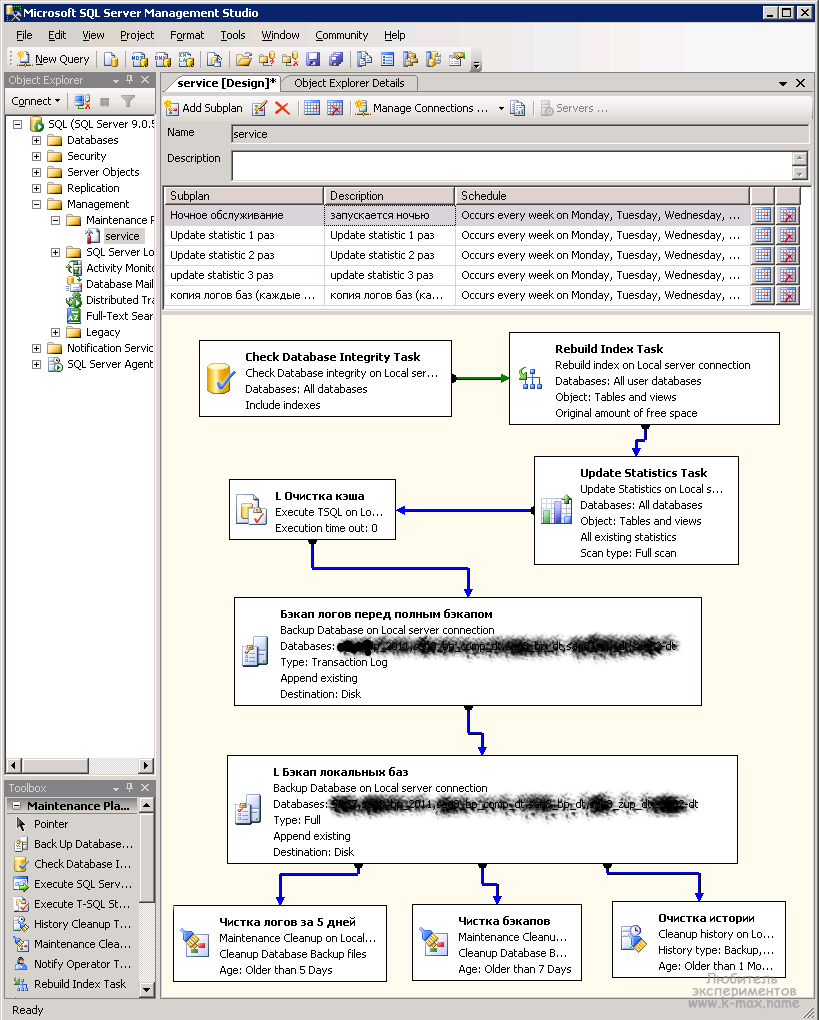 Более подробно о выборе и планировании плана обслуживания можно посмотреть данный подкаст(временно убран по причине заражения сайта s.rpod.ru):