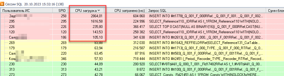 Если в колонке «CPU Загрузка» больше 100%, то значит запрос использует более одного логического ядра процессора.