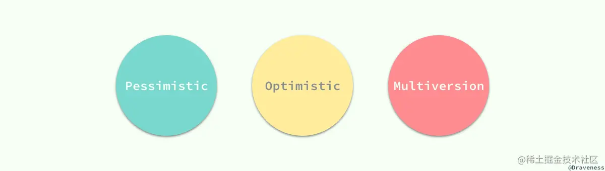 Это пессимистичный контроль параллелизма, оптимистичный контроль параллелизма и многоверсионный контроль параллелизма, среди которых пессимистичный контроль параллелизма на самом деле является наиболее распространенным механизмом контроля параллелизма, то есть блокировками; а оптимистичный контроль параллелизма на самом деле имеет другое название: оптимистичные блокировки, оптимистичные блокировки на самом деле это не настоящая блокировка, мы подробно расскажем о ней в конце статьи; последняя — это многоверсионный контроль параллелизма (MVCC), используемый в сочетании для повышения производительности чтения базы данных.