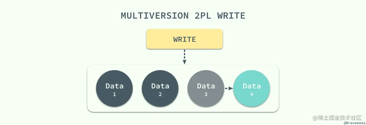 В соответствии с этой основной предпосылкой система базы данных представляет еще один механизм управления параллелизмом —Многоверсионный контроль параллелизма(Multiversion Concurrency Control), каждая операция записи будет создавать новую версию данных, а операция чтения будет выбирать наиболее подходящий результат из ограниченного числа версий данных и возвращать его напрямую; в это время конфликт между операциями чтения и операции записи станут уже не требующими внимания, а управление и быстрая подборка версий данных становится основной проблемой, которую необходимо решить MVCC.