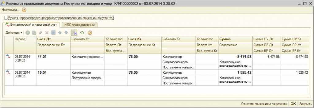 Сумма комиссионного вознаграждения указывается вручную по данным отчета агента, предоставленного комиссионером.