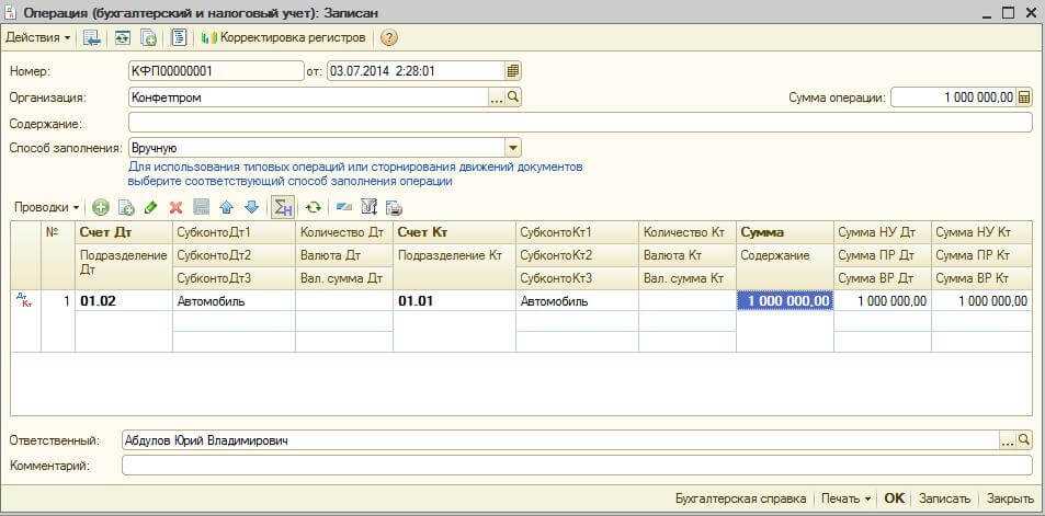 Приходим к самому сложному вопросу: каким документом отразить данную операцию? Проблемы возникают из-за необходимости: