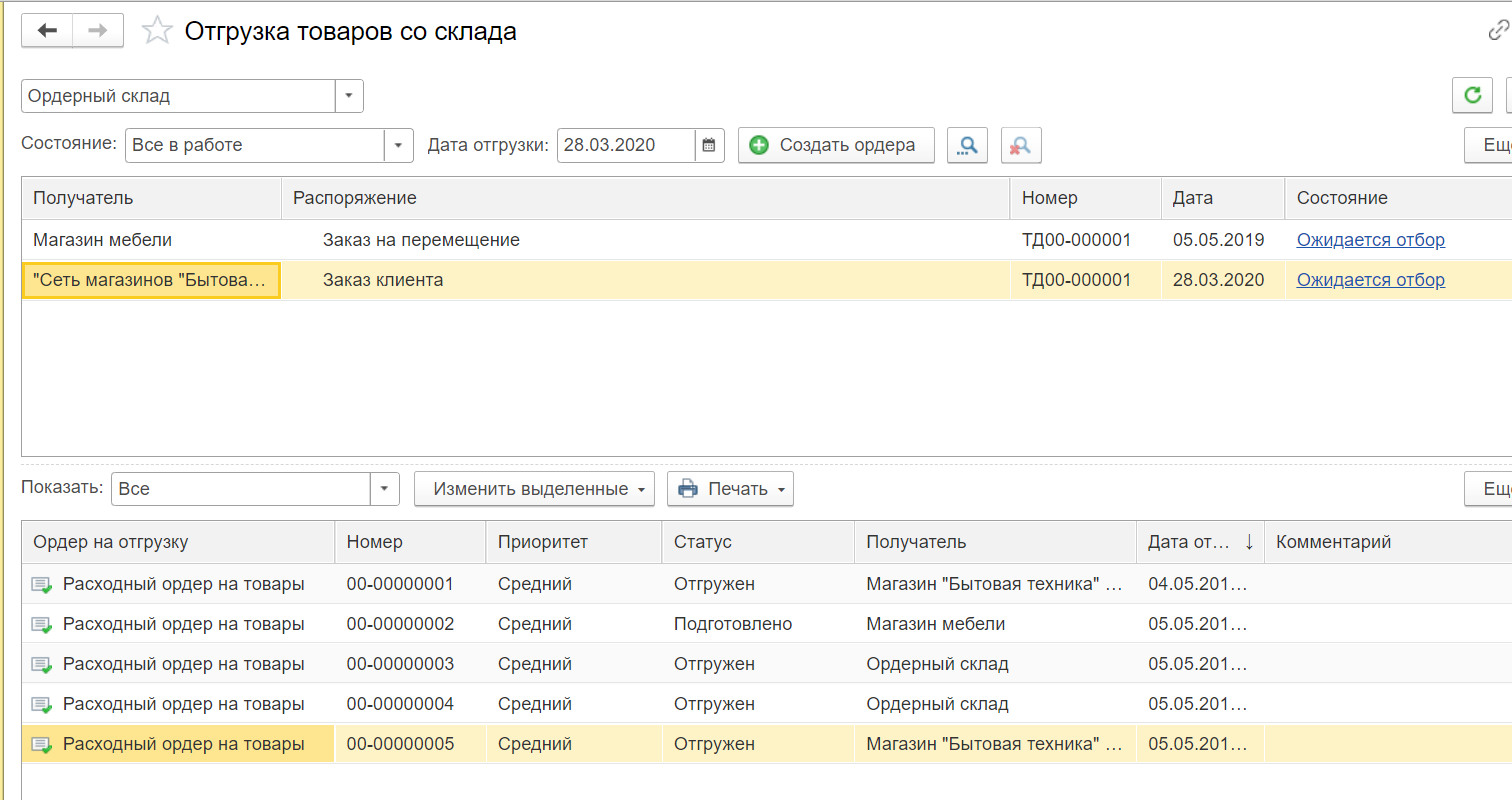 Если все шаги выполнены верно, в нижней части рабочей области будет сформирован ордер на отгрузку. Документ также будет доступен в разделе «Склад и доставка» – «Расходные ордера на товары».