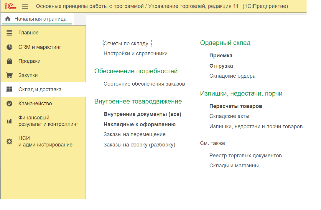 На новой странице появится область «Отгрузка товаров со склада».
