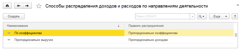 Распределение доходов и расходов по направлениям деятельности отражается в документе Распределение доходов и расходов по направлениям деятельности.