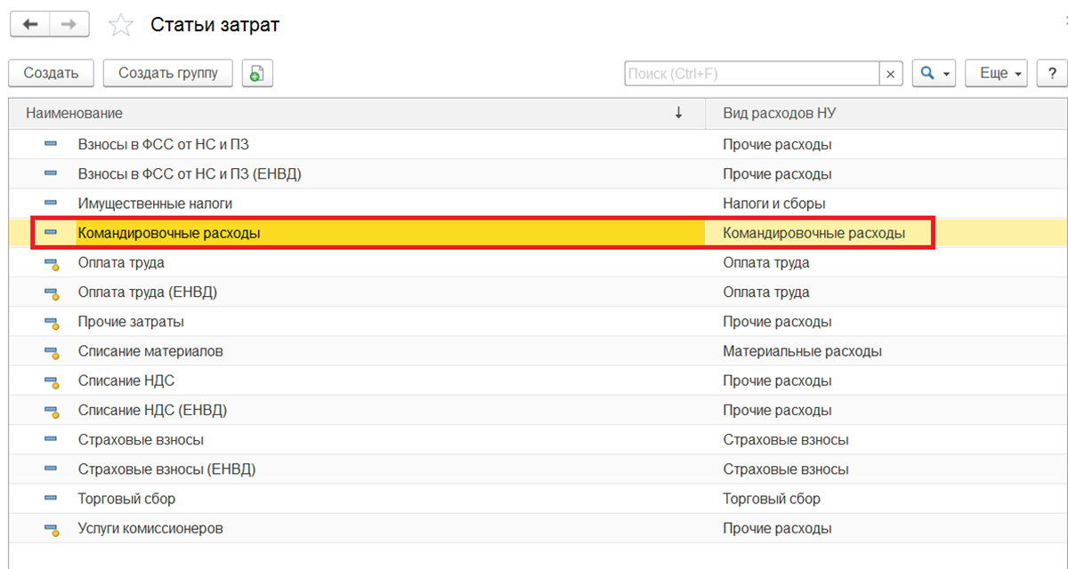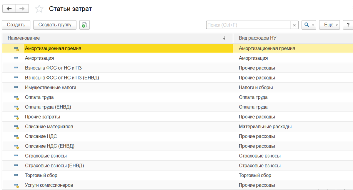 В новых информационных базах справочник заполнен значениями по умолчанию (предопределенными элементами) самыми распространенными видами затрат: